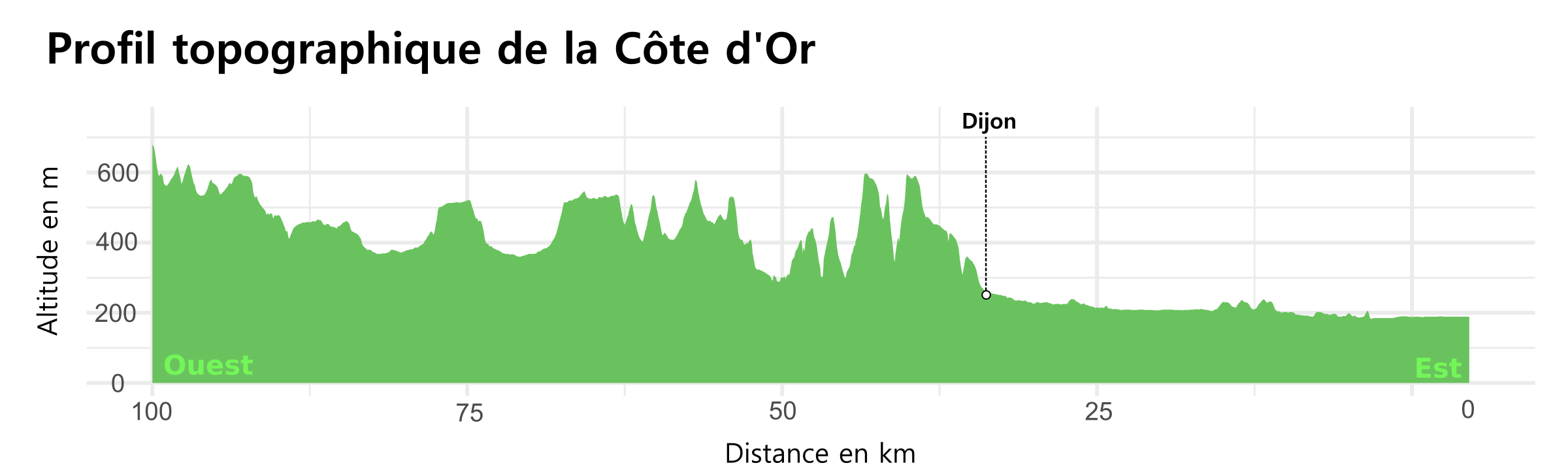 la Saône-et-Loire. En allant vers l’ouest, le plateau de Langres marque des altitudes moyennes plus